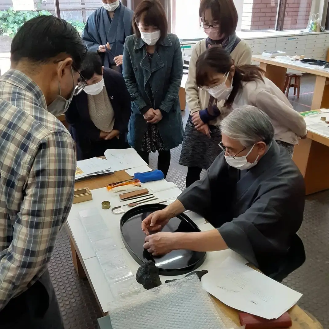 盆石とは、白い砂と小さな自然石を用いて、漆塗の盆の上に小さな庭園を形成する縮景芸術である。